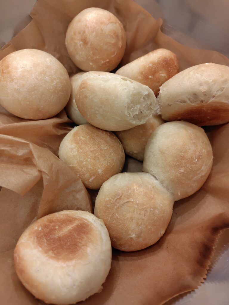 物価高のこの頃ですが、毎月、寄付を頂いてなんとか子ども食堂を運営しています。今月は鶏肉、豚肉、岐阜からのお野菜、魚の団子などをご寄付頂きました。調理から配膳、片付けまで全員無償のボランティアが運営し、この活動を寄付で支えてくれる仲間がいます。さまざまな支えがあって、子ども食堂は成り立っています。今月の持ち帰りデザートには、リスドォルで丸パンを焼いて、間に苺ジャムと練乳を混ぜたバターを塗りました。メニューはチキンオーバーライス、焼豚、キャベツと大根の塩昆布和え、切干し大根と人参のごまサラダ、カボチャ・アスパラ・山芋ソテー、お魚団子のスープ、苺ミルクパン。84食出ました。